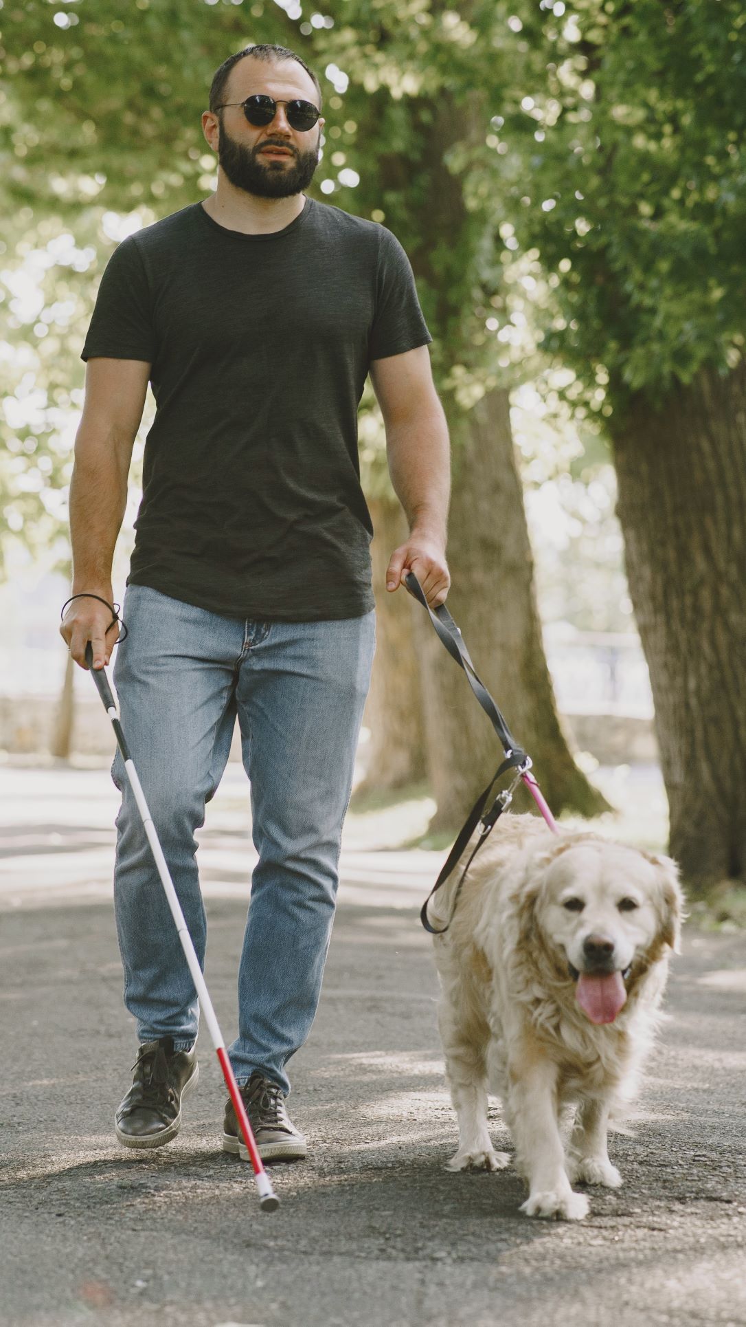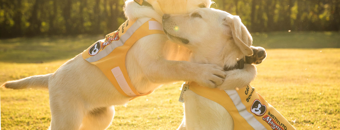 Ao auxiliarem na mobilidade, os cães-guia são essenciais no desenvolvimento da autoestima e na promoção da qualidade de vida.