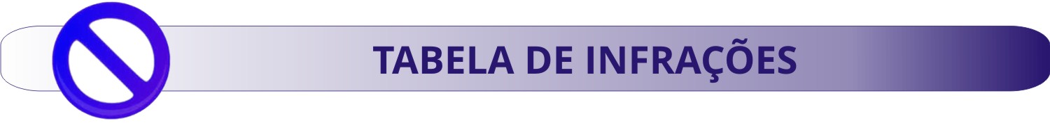 Acesse a tabela de enquadramentos das infrações de trânsito, com as respectivas competências de fiscalização (municipal, estadual, rodoviária) (Portaria nº 3/2016 do Departamento Nacional de Trânsito - Denatran)