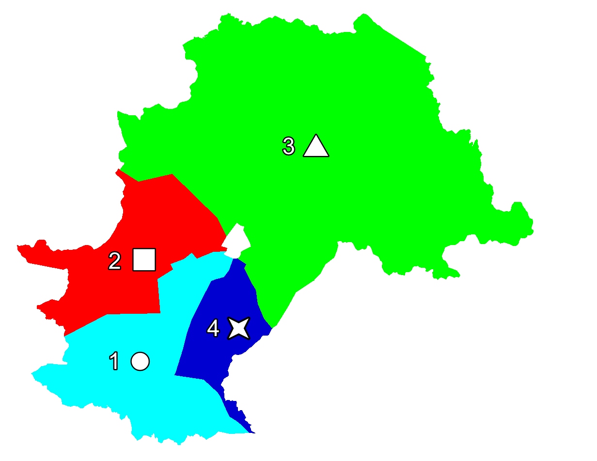 As quatro áreas foram divididas da seguinte maneira: