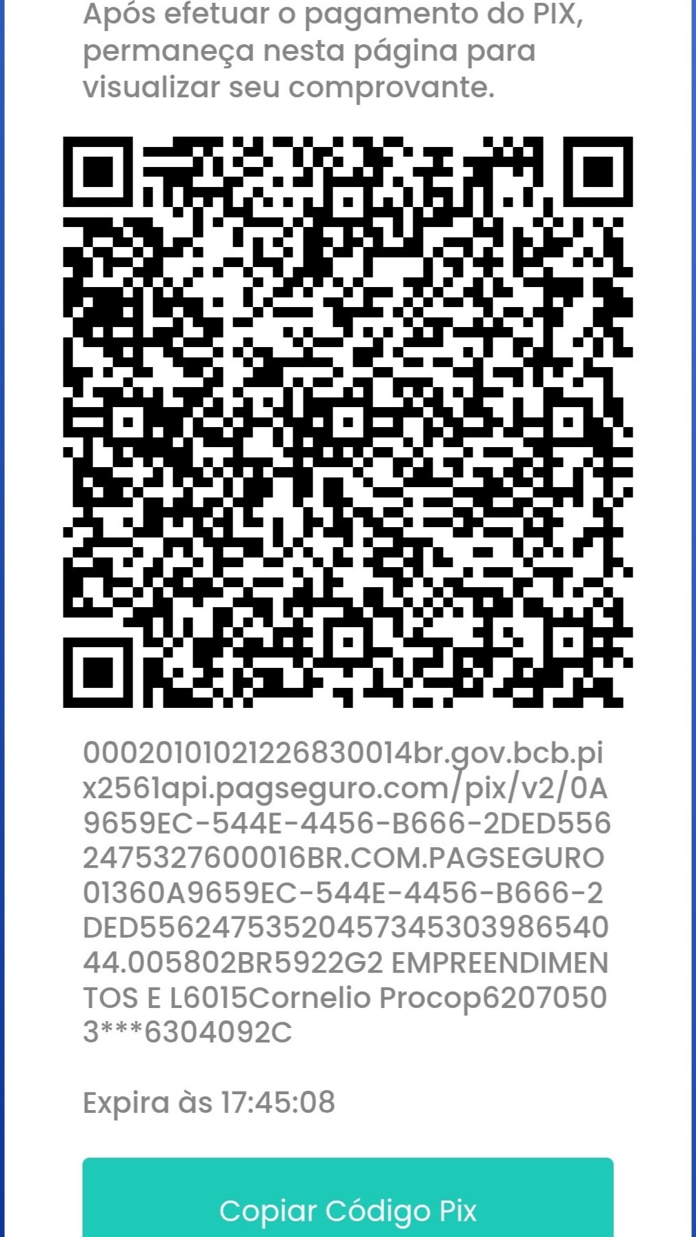 Copie o código e pague no app bancário de sua preferência;