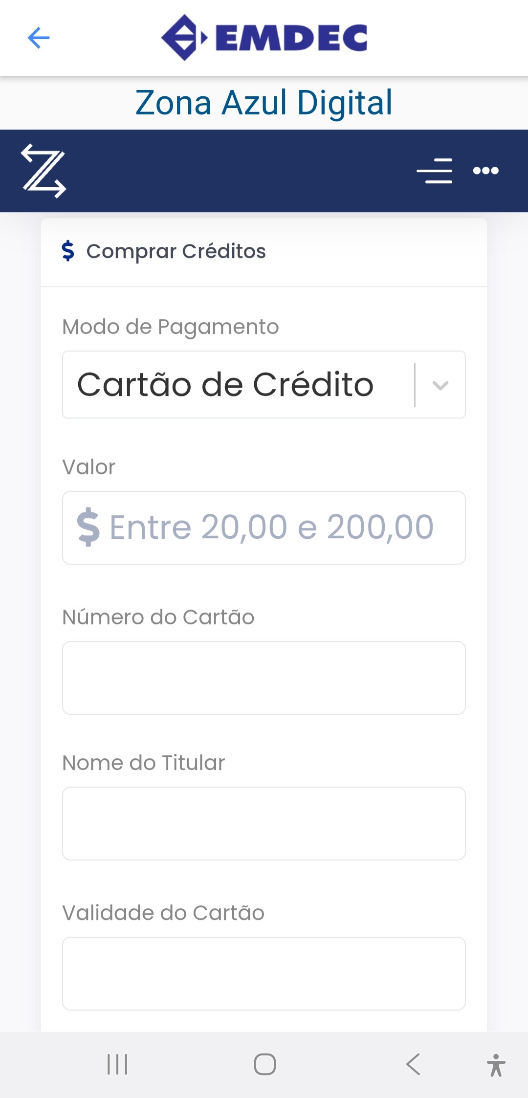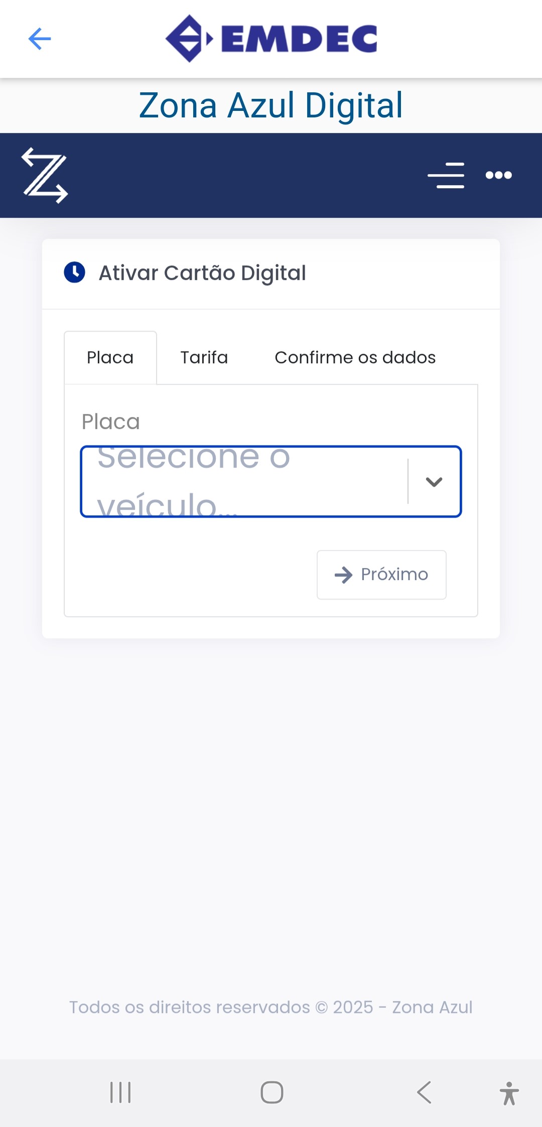 Clique no ícone Zona Azul Digital;